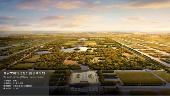 以大明宫遗址大明宫夜景保护改造和展示盛唐文化为特色,建设集文化、旅游、商贸、居住、休闲服务为一体的、具有国际水准的城市新区。